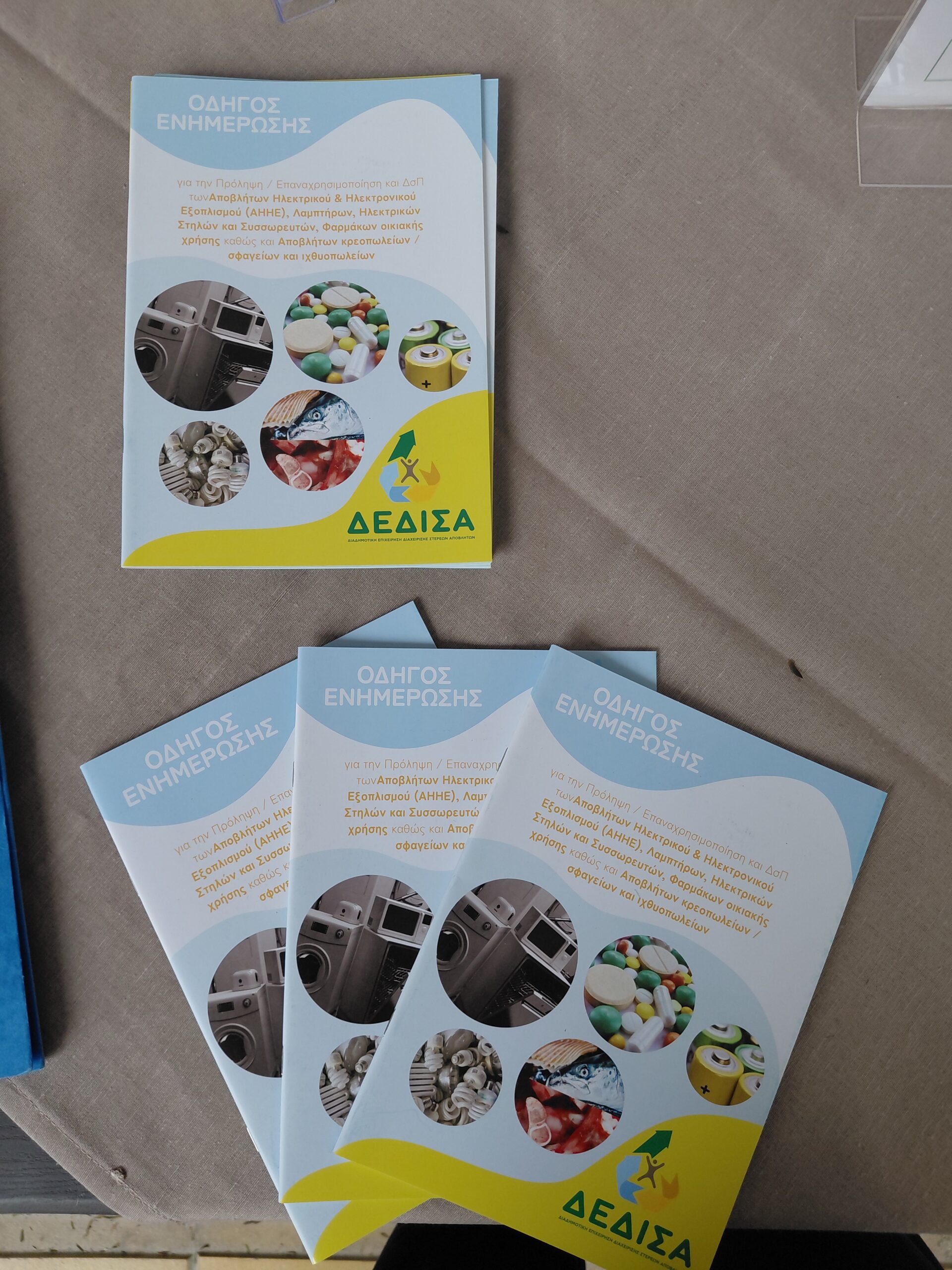 - Διανομή 250+ Ενημερωτικών Οδηγών με πρακτικές οδηγίες για την πρόληψη και την επαναχρησιμοποίηση ΗΗΕ και τη σωστή διαλογή στην πηγή ΑΗΗΕ.